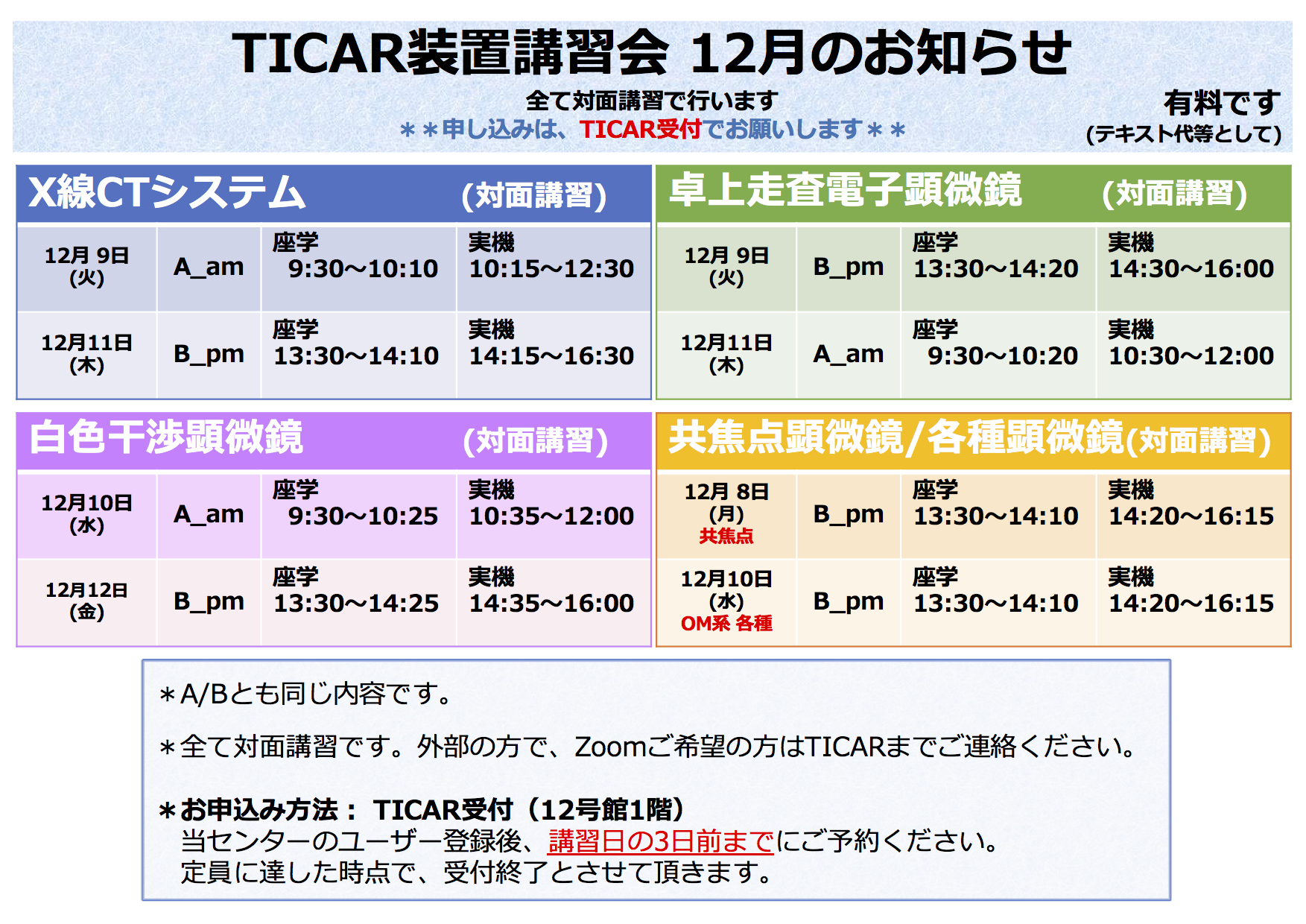 12月講習会受付開始しました講習会のお申し込みは当センターにメールでお知らせください